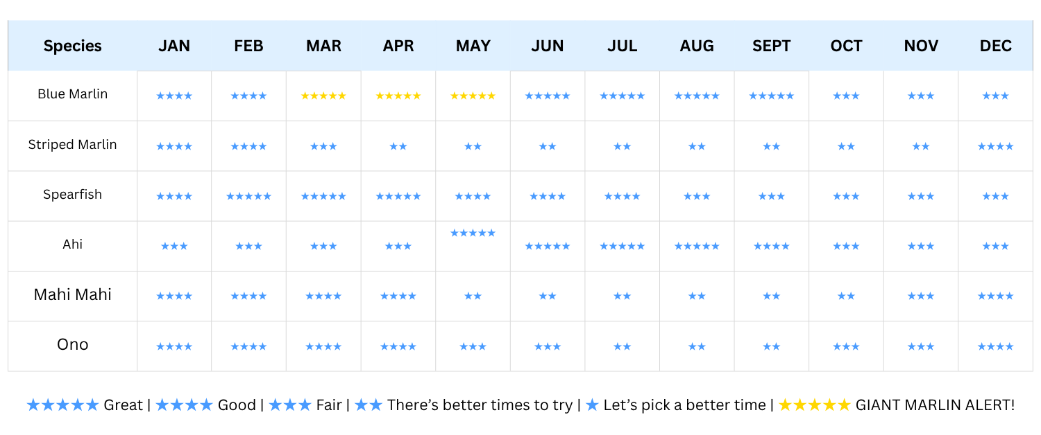 If you’re chasing excitement on the open ocean, Mahi Mahi fishing in Kona delivers non-stop thrills. Also known as Dorado, these powerful pelagics are famous for their lightning-fast runs, acrobatic leaps, and vibrant colors that shimmer like jewels—think electric greens, golden yellows, and flashes of blue. And true to their Hawaiian name “Mahi,” meaning strong, these fish live up to the title every time they strike. Trophy-sized Mahi are a favorite among anglers for good reason. Not only are they a blast to hook and land, but they’re also one of the tastiest fish in the sea. Their flaky, mild meat makes for mouthwatering meals whether grilled, seared, or served fresh as sashimi. Kona offers year-round opportunities to target Mahi Mahi, but the action heats up during winter when conditions are ideal and the bite gets hot. Whether you’re a seasoned angler or just starting, hooking into a Mahi off the Big Island’s coast is an experience that sticks with you. Ready to get on the water? At Big Island Sportfishing, our expert crew knows where to find these fast-moving fighters. We’re here to deliver unforgettable days on the water and help you land that dream catch. Don’t wait—book your Mahi Mahi fishing trip in Kona today and make it one to remember.